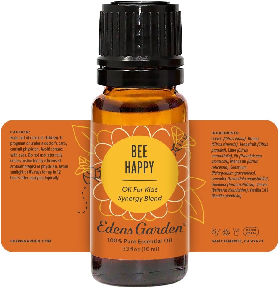 Edens Garden Bee Happy Essential Oil Blend- 100% Pure Premium Grade, Undiluted, Natural, Therapeutic, Aromatherapy, The Best For Diffusing Kid Safe, Candle, Humidifiers 10 ml (.33 fl oz)