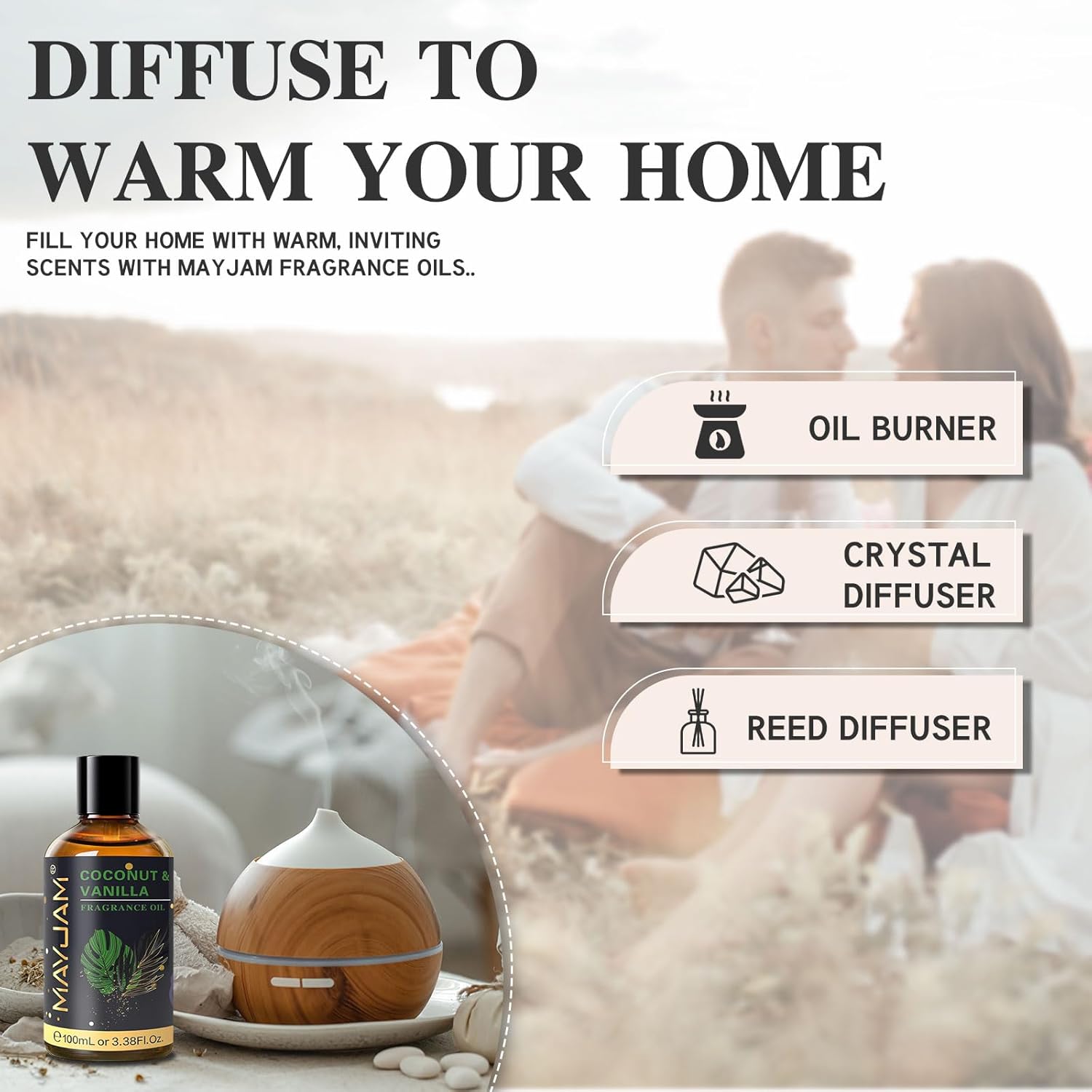 MAYJAM 100ML/3.38FL.OZ Coconut & Vanilla Fragrance Oils with Glass Dropper, Essential Oils for Diffusers for Home, Long Lasting Scented Oils for Diffusers Soap Candle Making